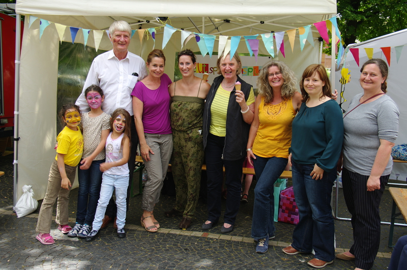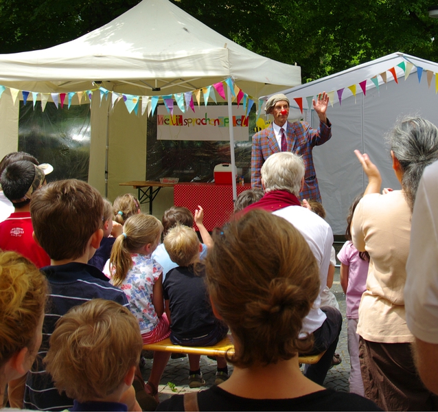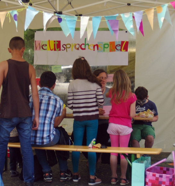 Außerdem: Kinderschminken unterstützt von der Zukunfswerkstatt gab es auch und ein Spielezelt mit einem Weltsprachenspiel ...