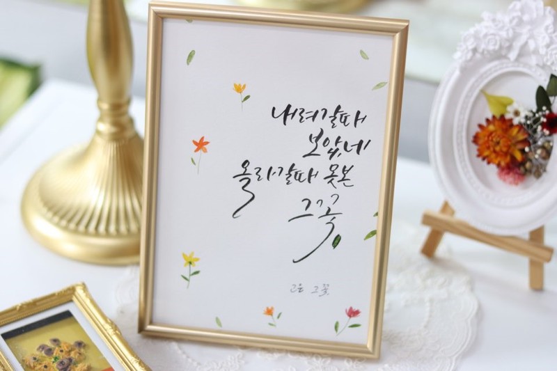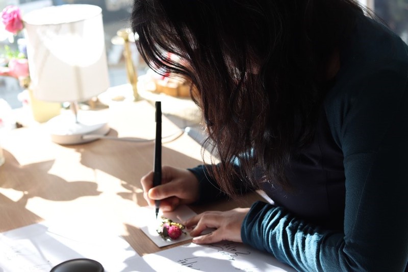 Young-Im Seo bietet an dem Fest koreanische Kalligrafie und schöne Verpackungen aus Seide an.