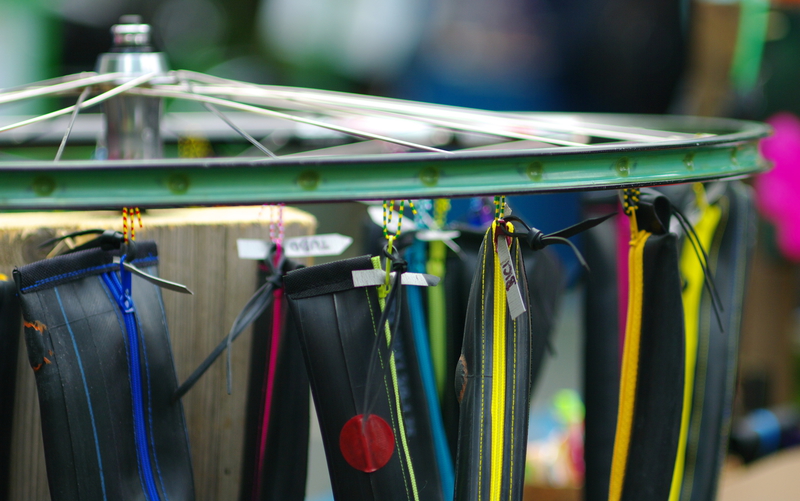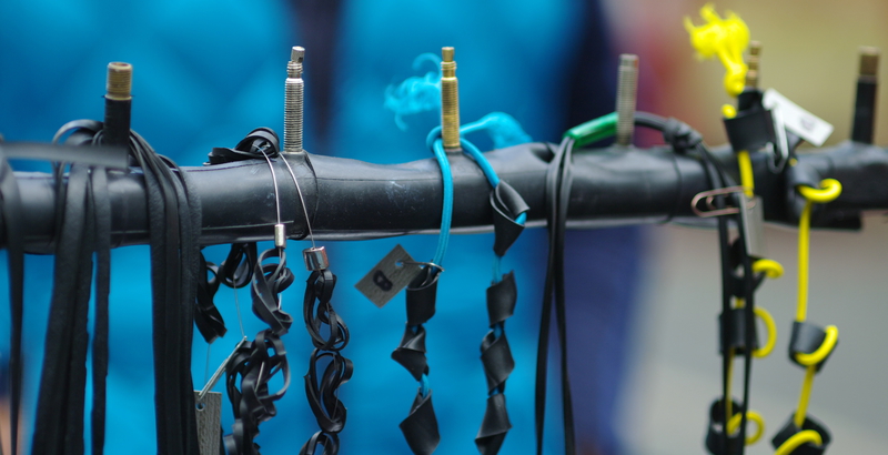 Upcycling von gebrauchten Fahradschläuchen, Diercke Weltatlanten, und was sie sonst so nicht wegwerfen kann.