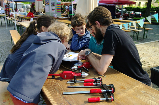 - Die Stadt Heidelberg informiert zur Bekämpfung von Tigermücken an einem Infostand mit einer Kinder-Mitmachsktion.